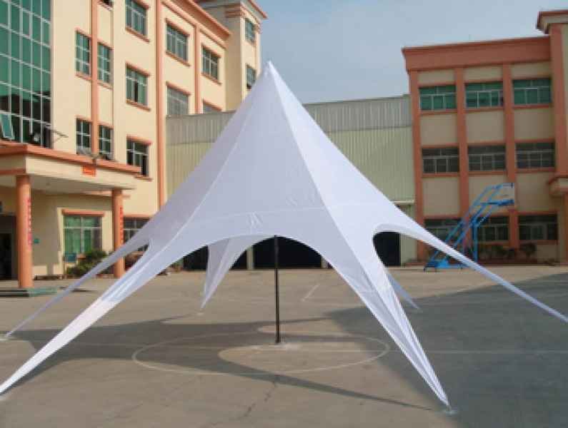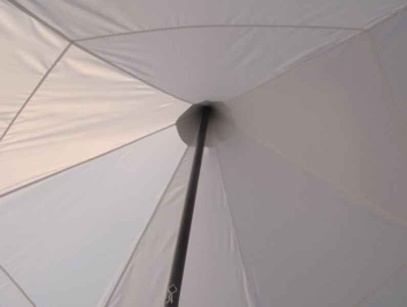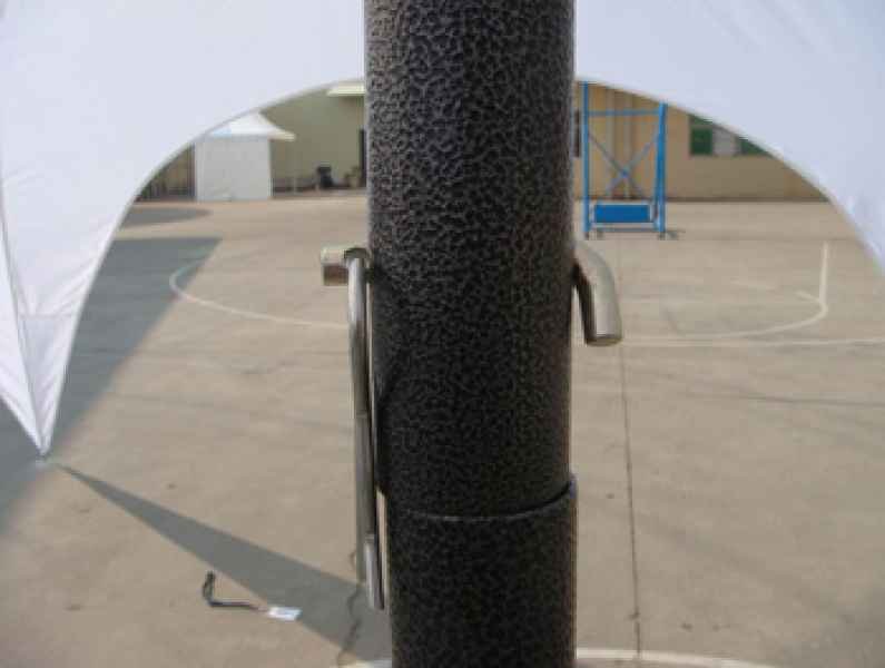 Tendas de fácil e rápida montagem totalmente construídas em PVC 250gr ou 650gr, suportada por pilar central em tubo de aço electo-zincado.