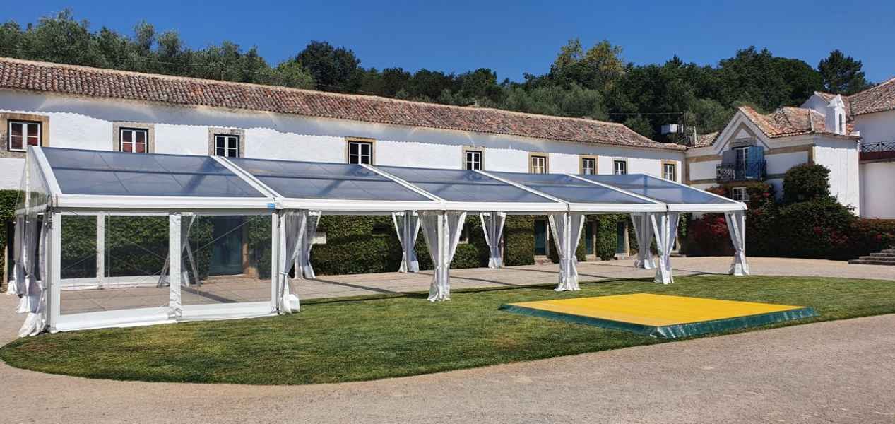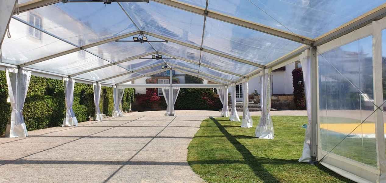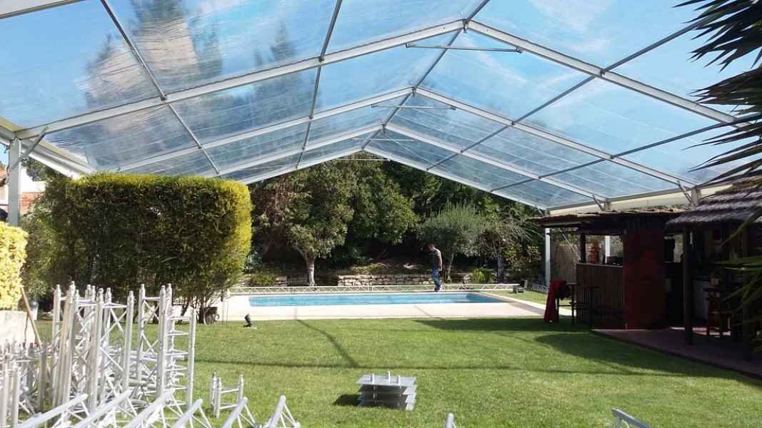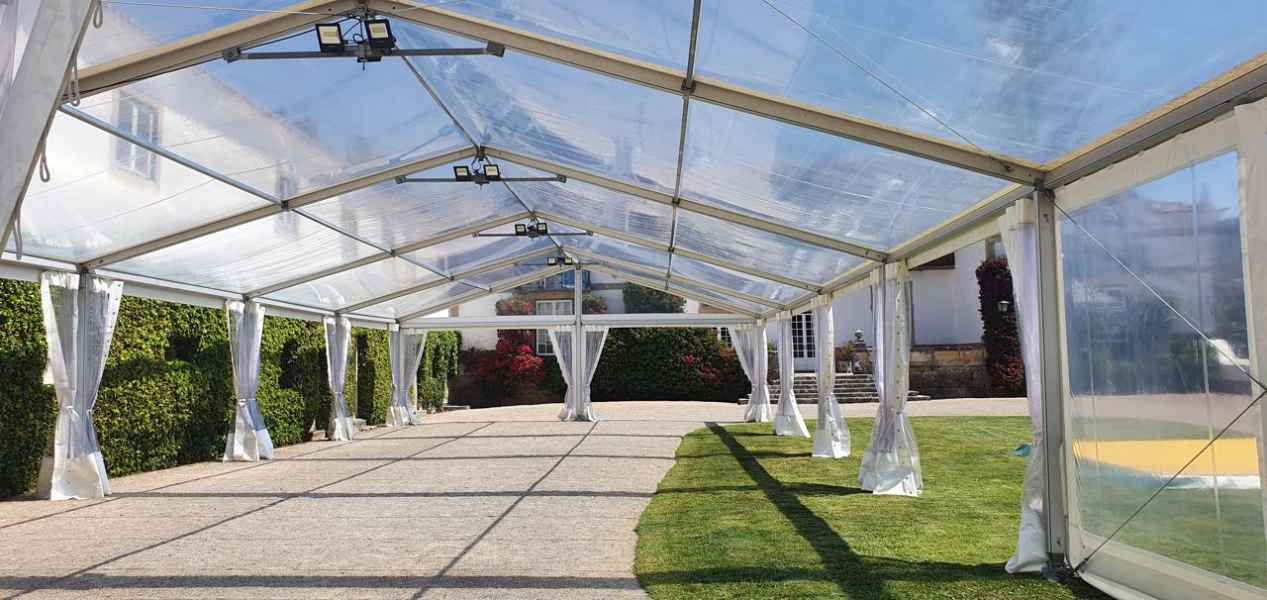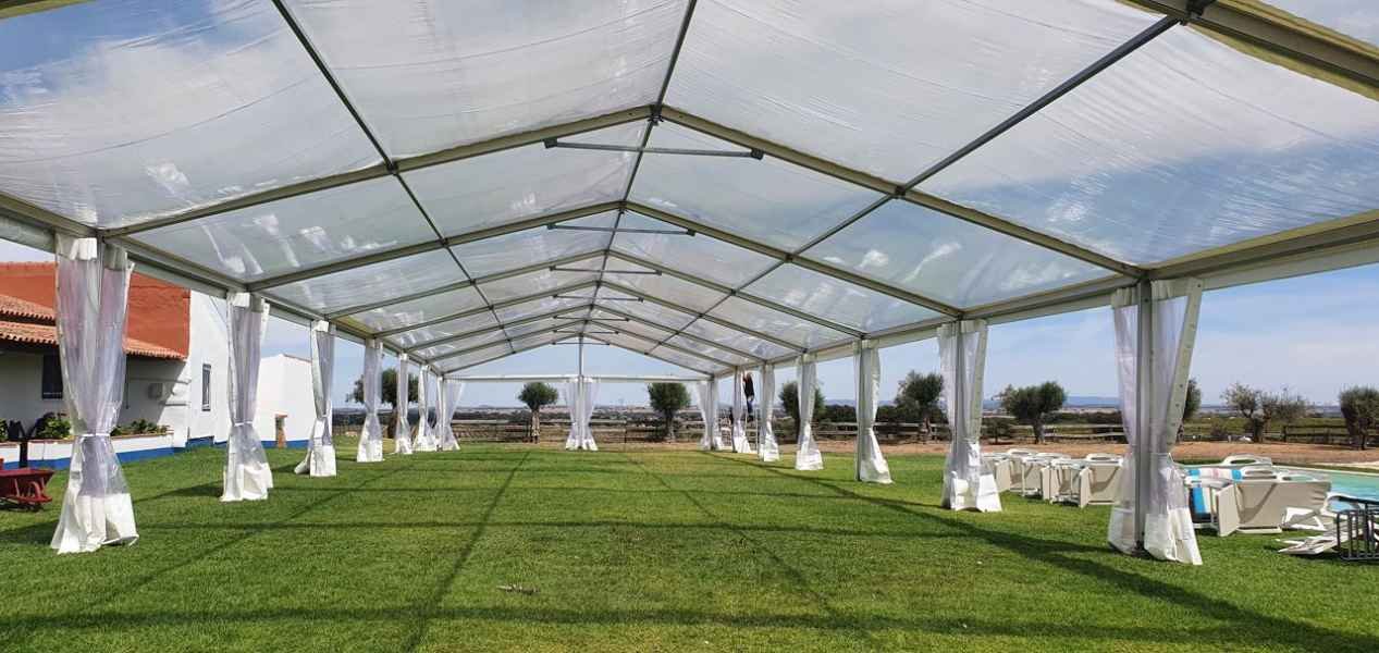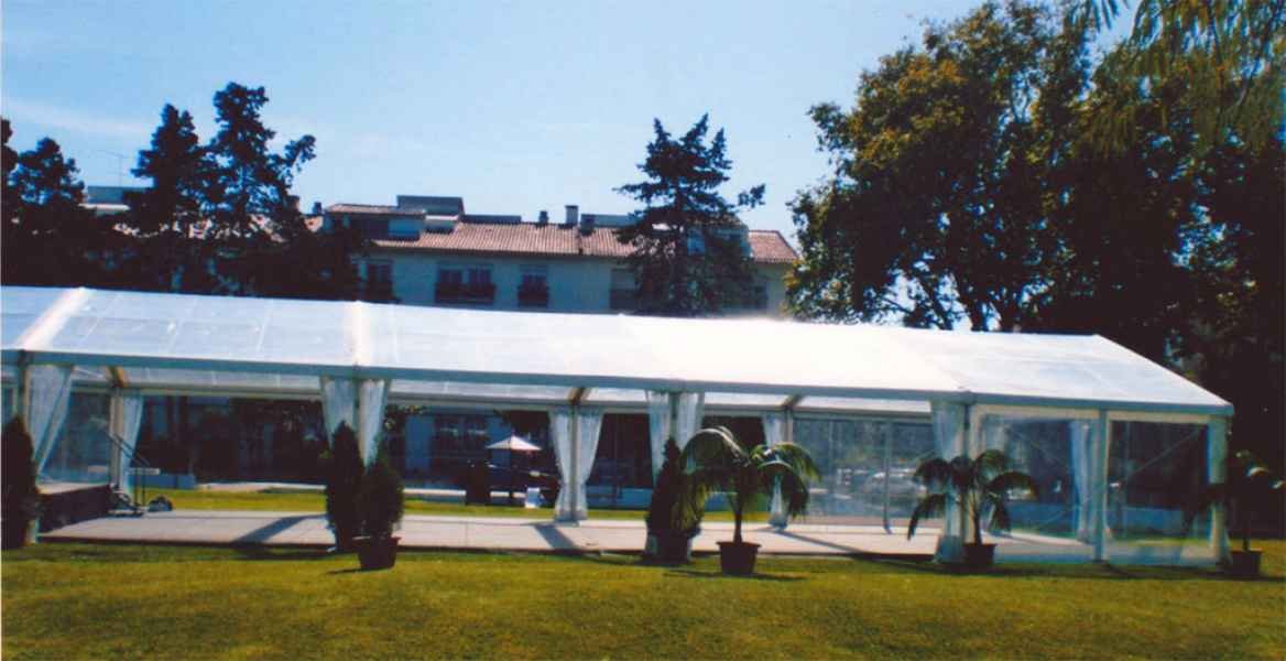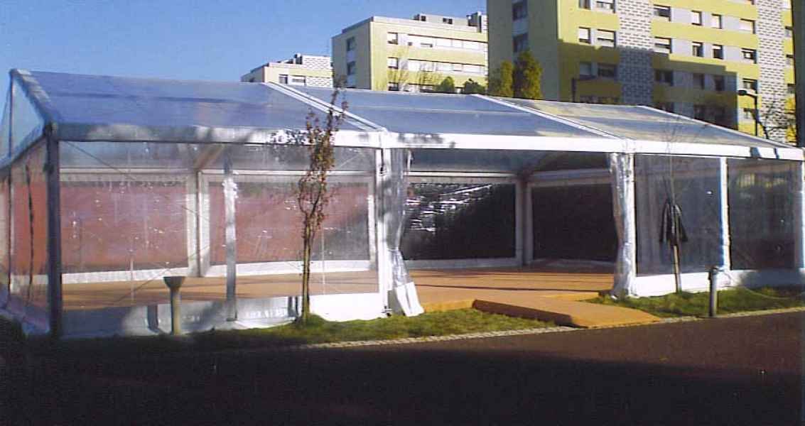 Ideais para coberturas com alguma dimenção, estas tendas têm a peculiaridade de ser todas em tela transparente, têm a ver com a geografia ,iluminação e decoração do evento a que se destina.
