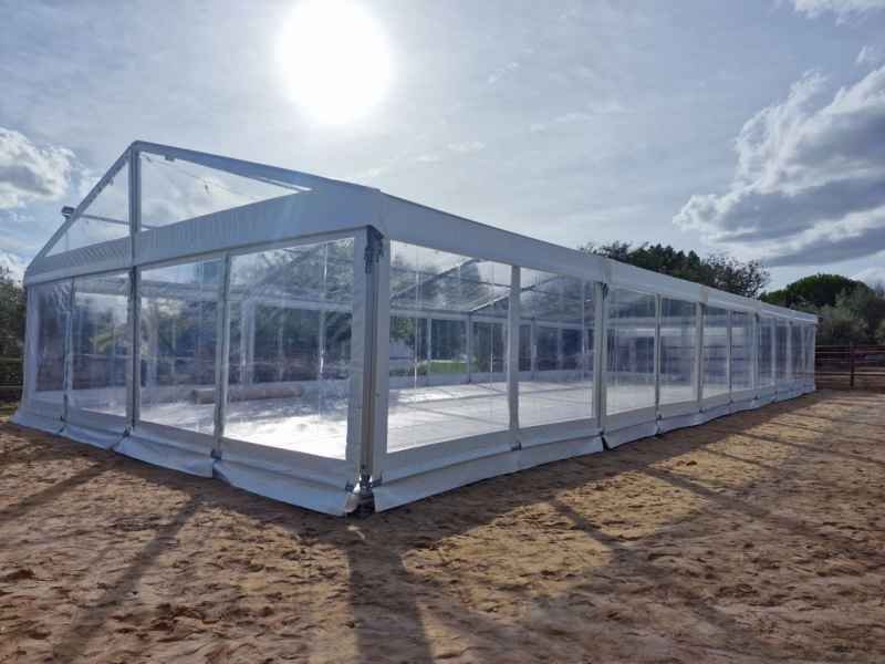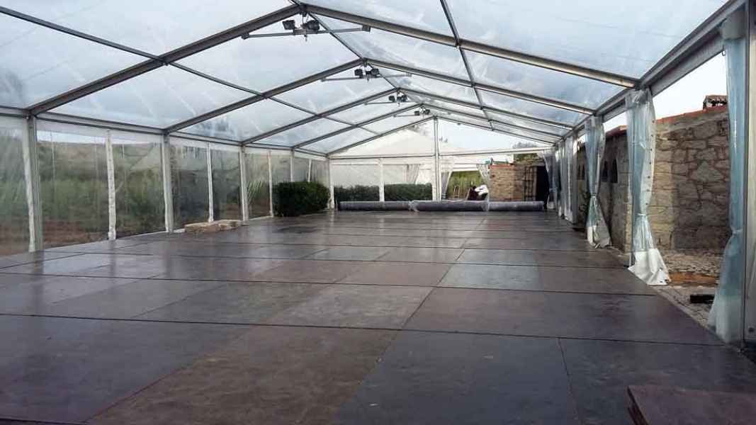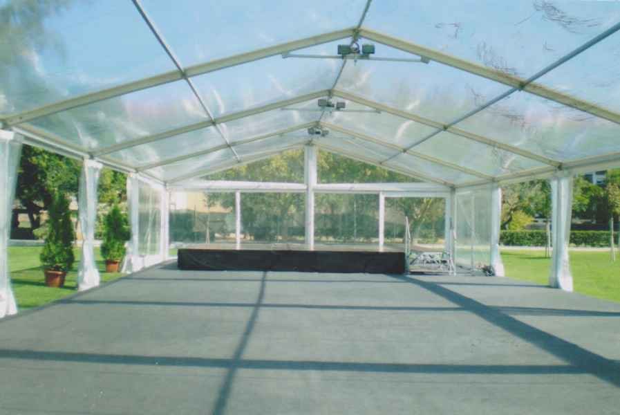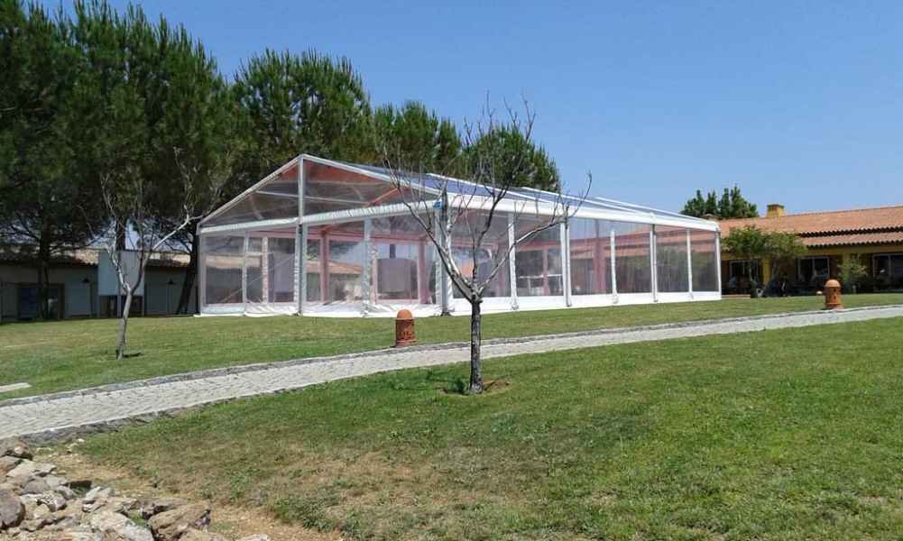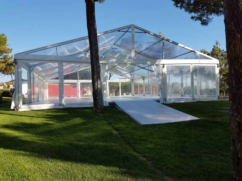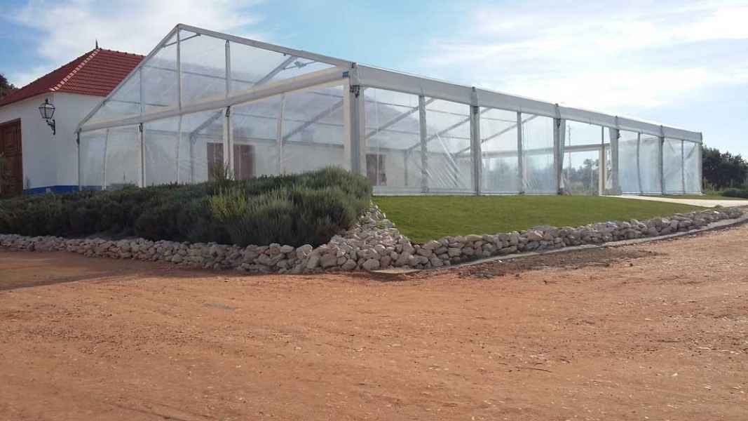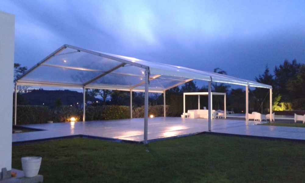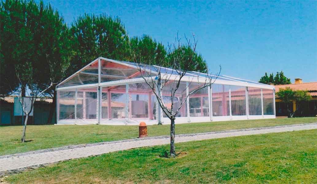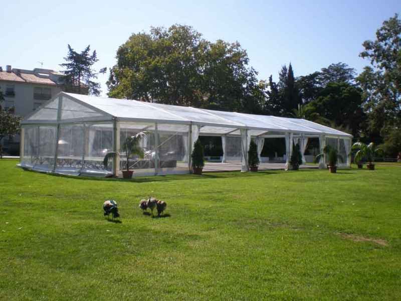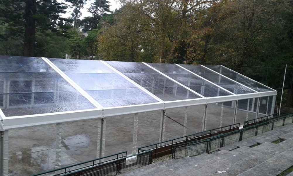 Ideais para coberturas com alguma dimenção, estas tendas têm a peculiaridade de ser todas em tela transparente, têm a ver com a geografia ,iluminação e decoração do evento a que se destina.