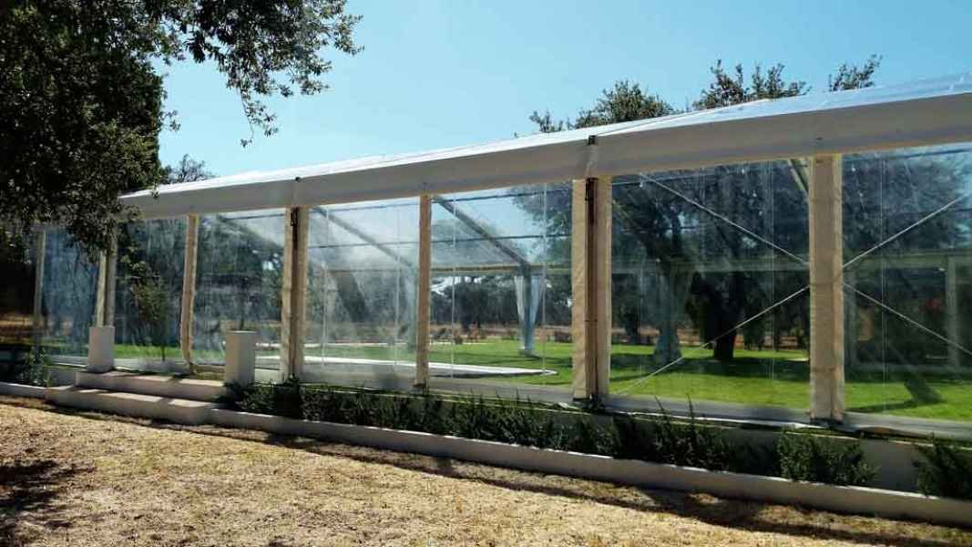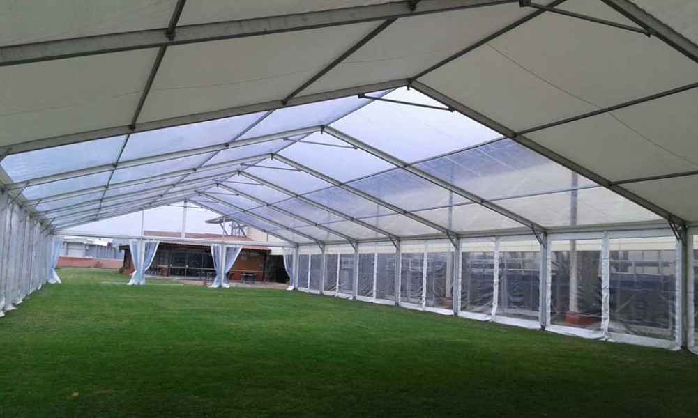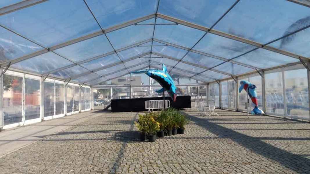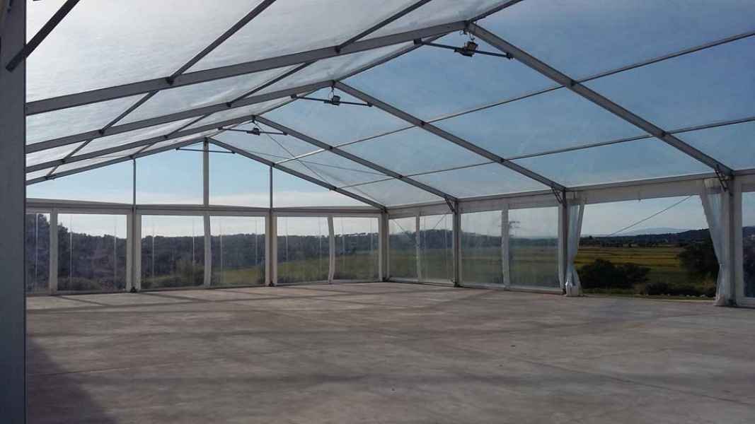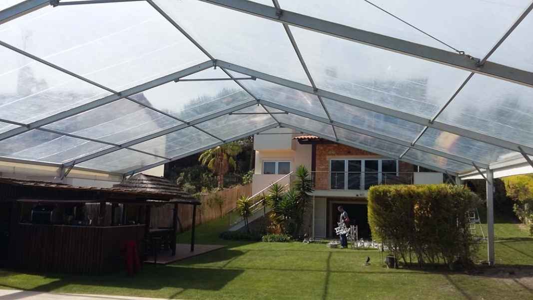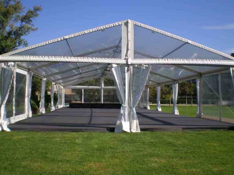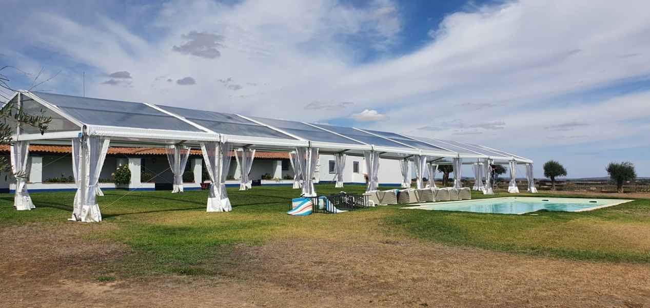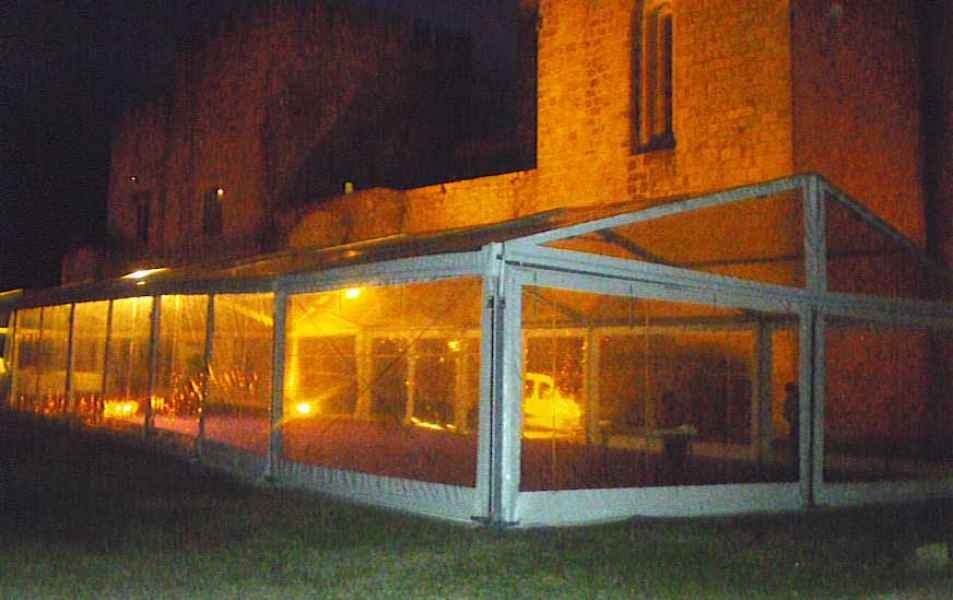 Ideais para coberturas com alguma dimenção, estas tendas têm a peculiaridade de ser todas em tela transparente, têm a ver com a geografia ,iluminação e decoração do evento a que se destina.
