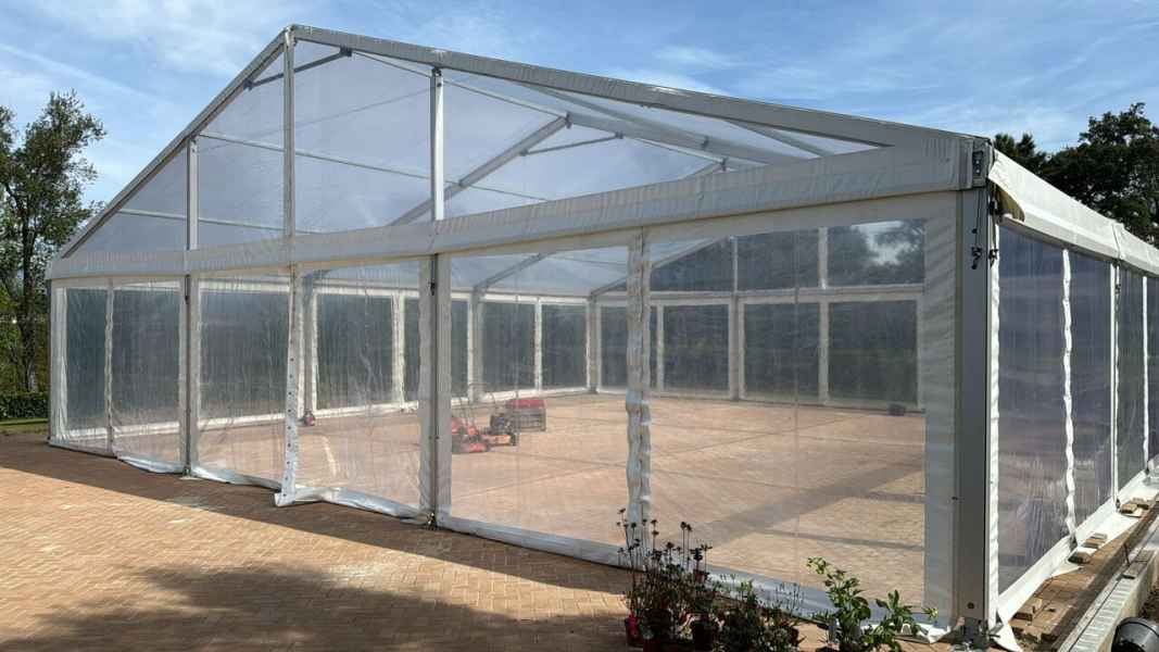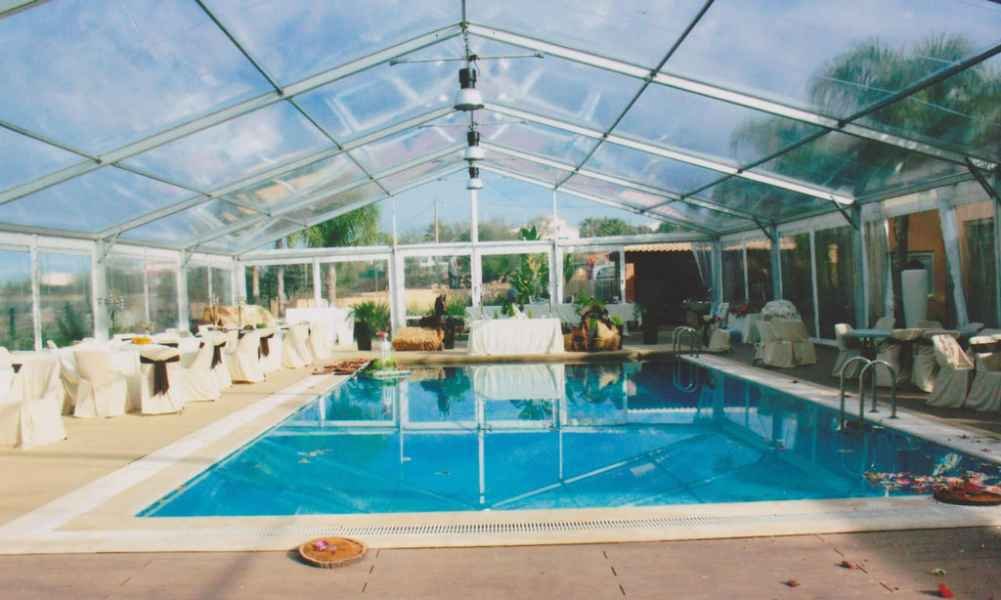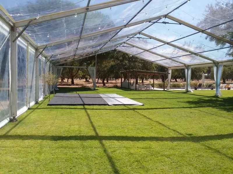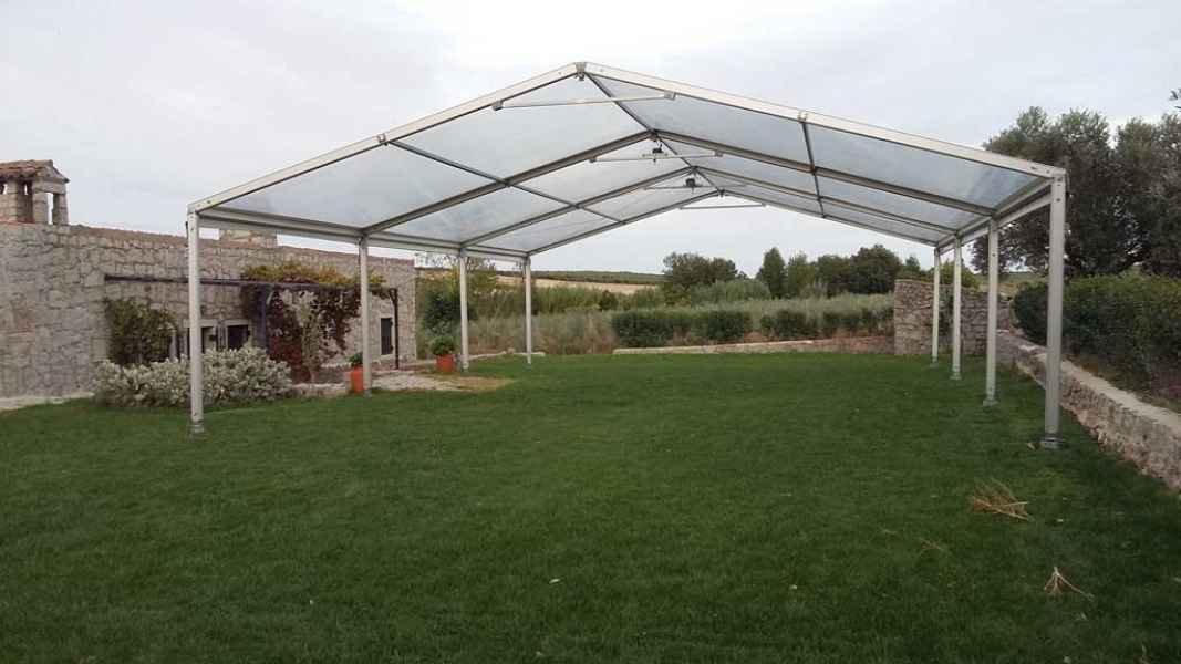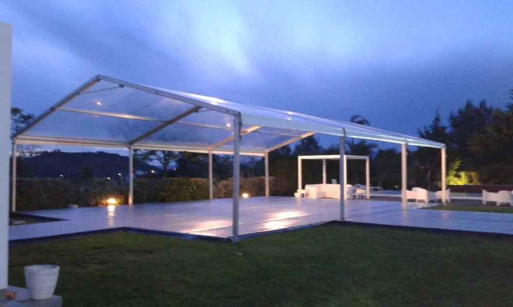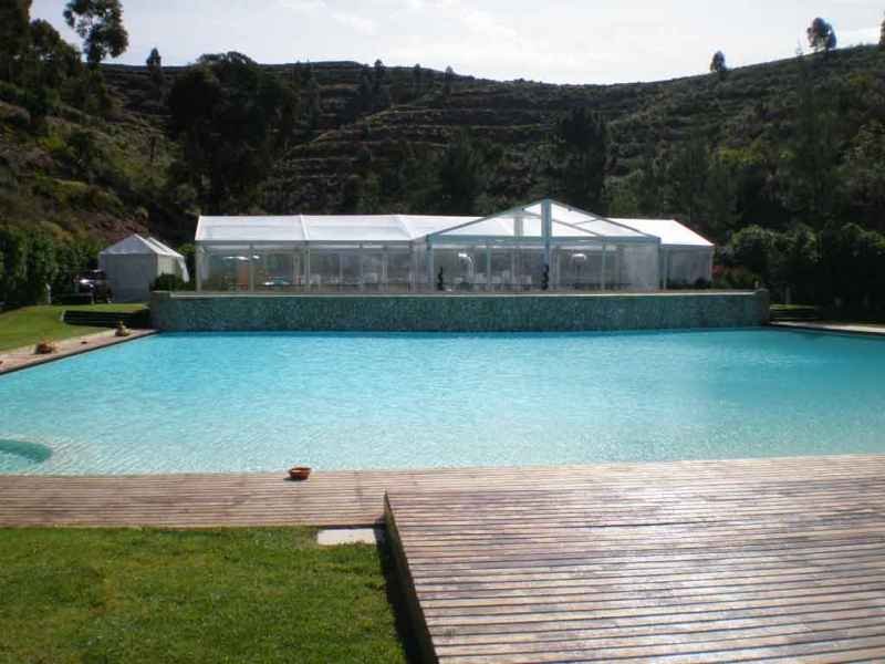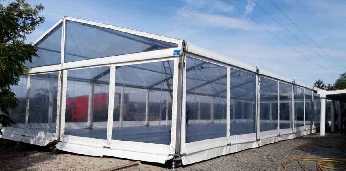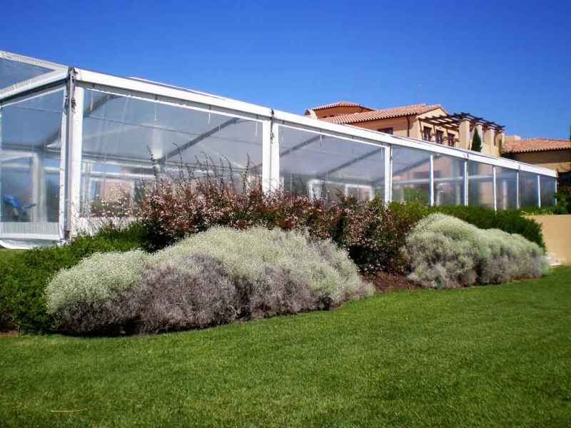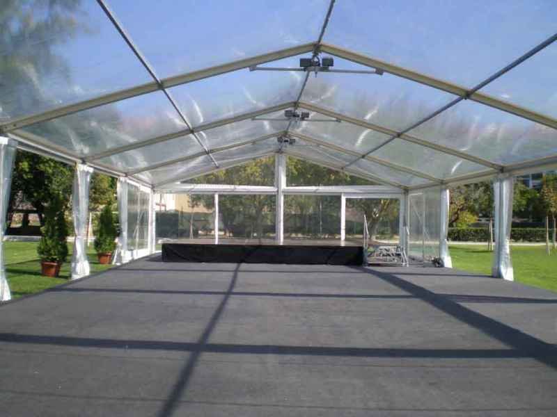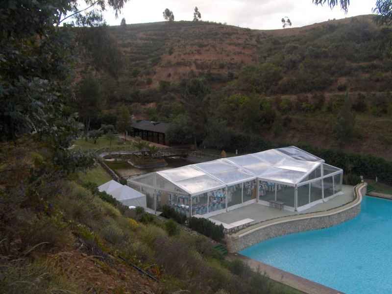 Ideais para coberturas com alguma dimenção, estas tendas têm a peculiaridade de ser todas em tela transparente, têm a ver com a geografia ,iluminação e decoração do evento a que se destina.