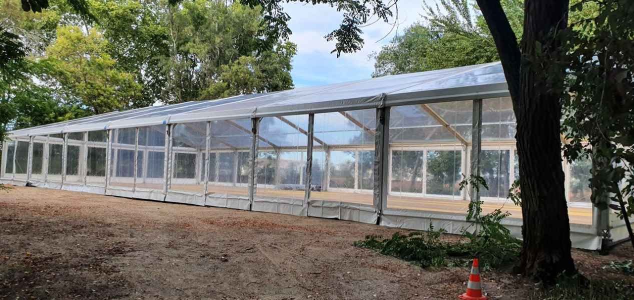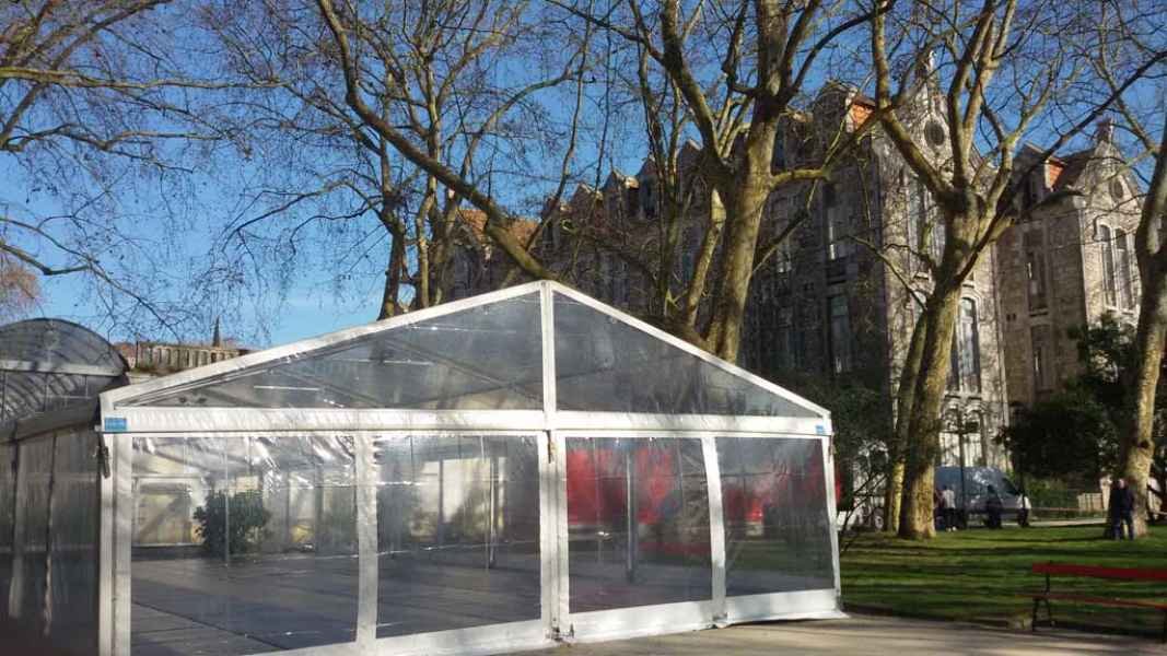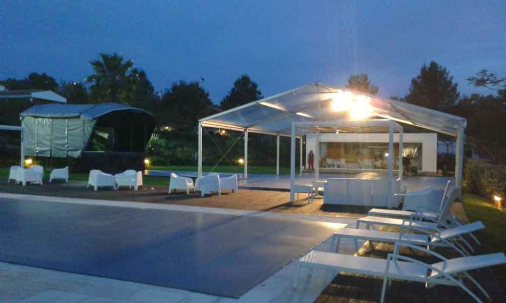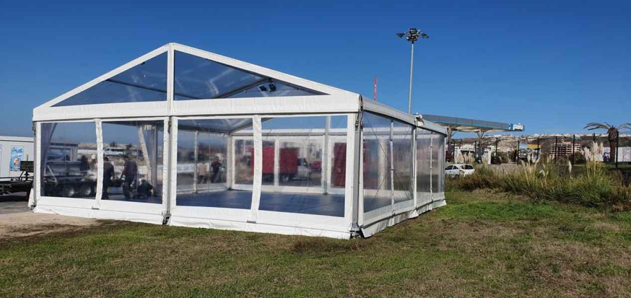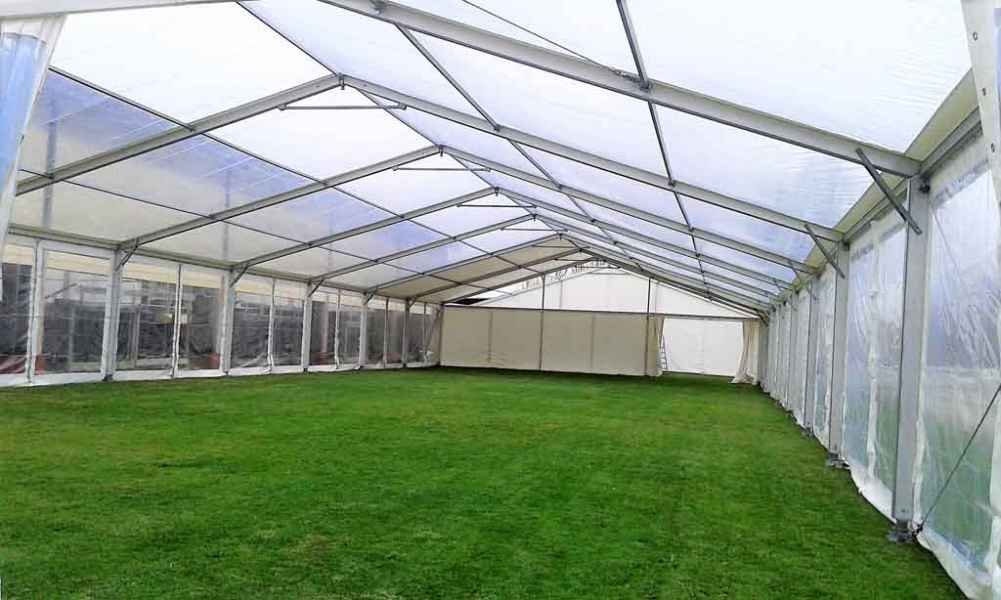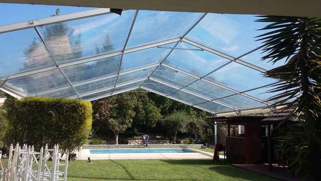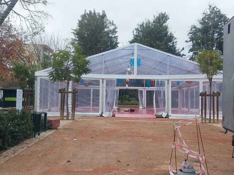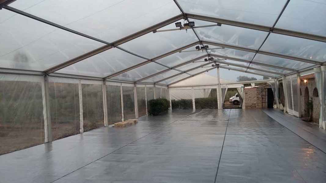 Ideais para coberturas com alguma dimenção, estas tendas têm a peculiaridade de ser todas em tela transparente, têm a ver com a geografia ,iluminação e decoração do evento a que se destina.